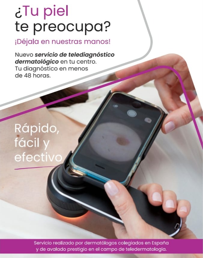 Gracias al telediagnóstico, un dermatólogo colegiado valorará tu caso en menos de 48 h, directamente desde nuestra clínica.